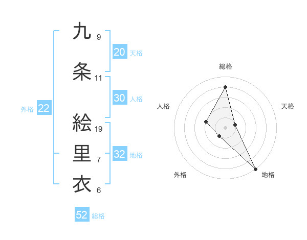 九条 絵里衣さんを姓名の画数から五運を鑑定