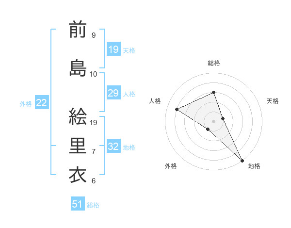 前島 絵里衣さんを姓名の画数から五運を鑑定