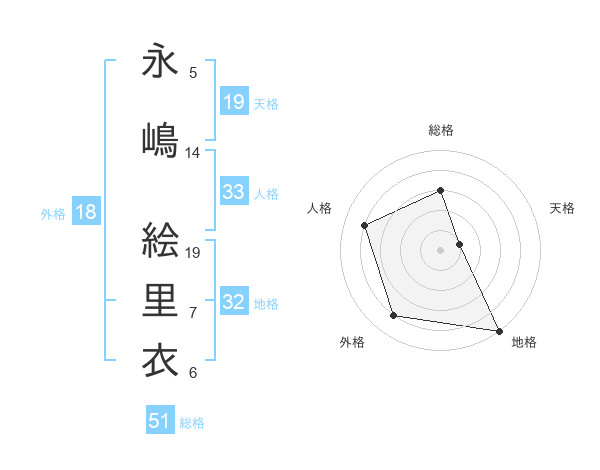 永嶋 絵里衣さんを姓名の画数から五運を鑑定