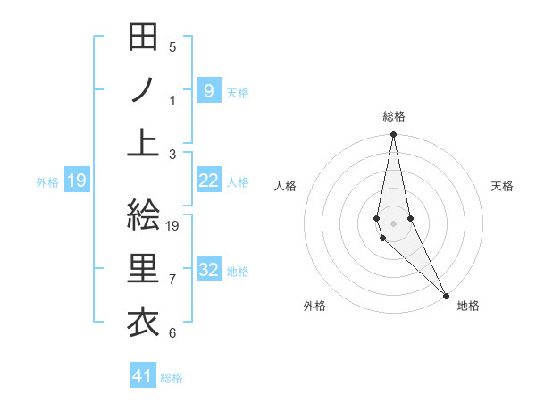 田ノ上 絵里衣さんを姓名の画数から五運を鑑定