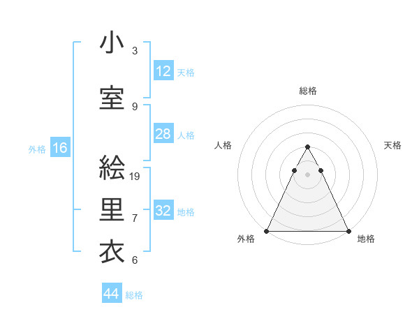 小室 絵里衣さんを姓名の画数から五運を鑑定