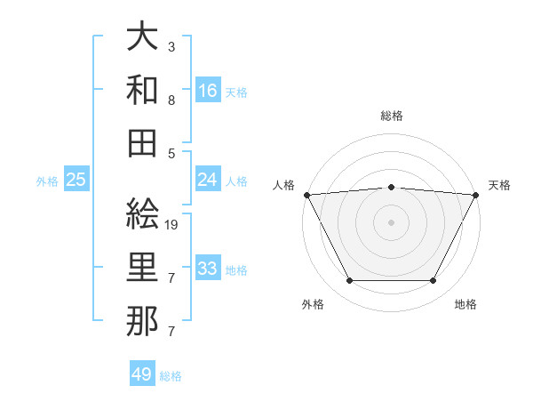大和田 絵里那さんを姓名の画数から五運を鑑定