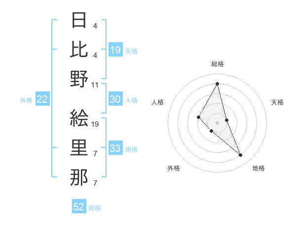 日比野 絵里那さんを姓名の画数から五運を鑑定