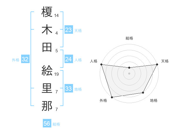 榎木田 絵里那さんを姓名の画数から五運を鑑定