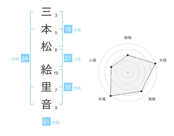 三本松 絵里音さんを姓名の画数から五運を鑑定