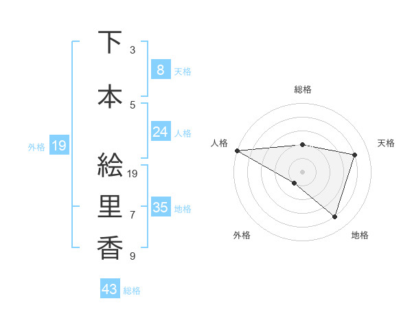 下本 絵里香さんを姓名の画数から五運を鑑定