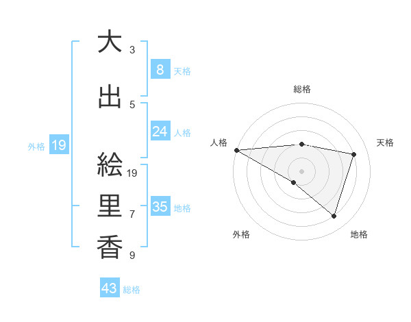 大出 絵里香さんを姓名の画数から五運を鑑定