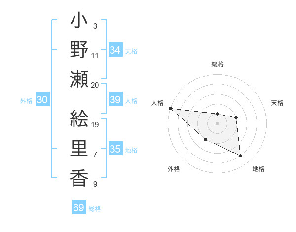 小野瀬 絵里香さんを姓名の画数から五運を鑑定
