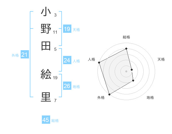 小野田 絵里さんを姓名の画数から五運を鑑定