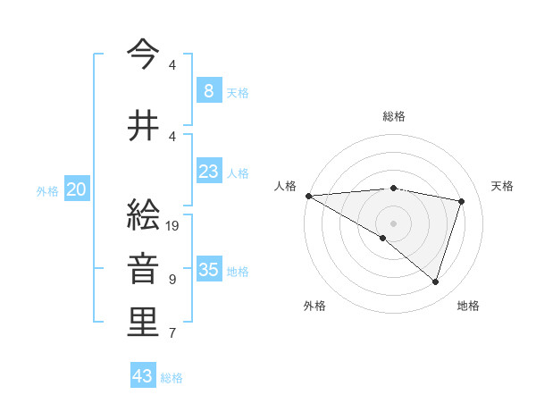今井 絵音里さんを姓名の画数から五運を鑑定