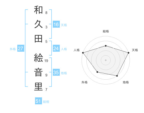 和久田 絵音里さんを姓名の画数から五運を鑑定