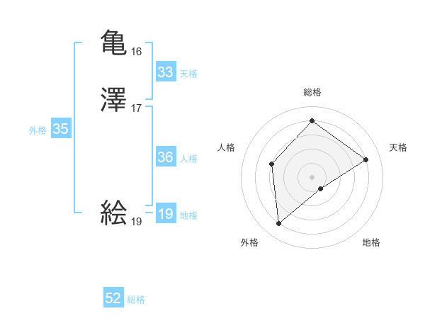 亀澤 絵さんを姓名の画数から五運を鑑定