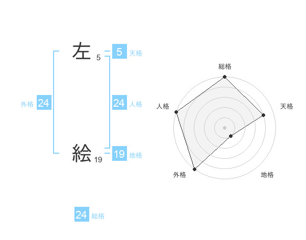 左 絵さんの外格は24画の5点!