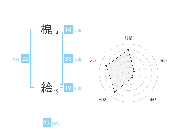 槐 絵さんの総格は33画の4点!