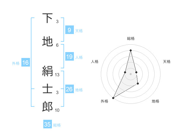 下地 絹士郎さんを姓名の画数から五運を鑑定