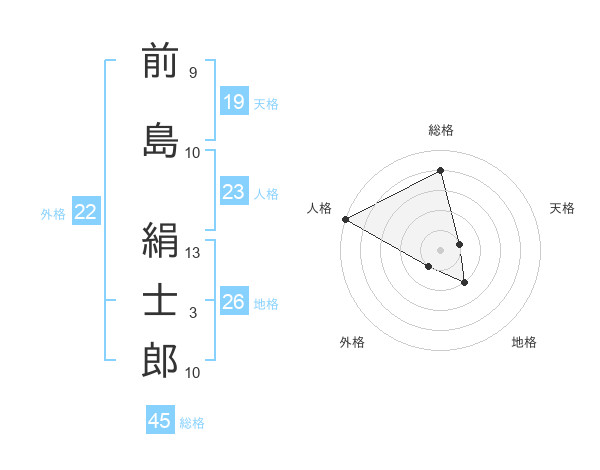 前島 絹士郎さんの総格は45画の4点!