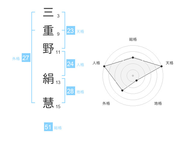 三重野 絹慧さんの総格は51画の3点!