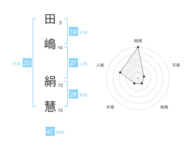 田嶋 絹慧さんの総格は47画の5点!