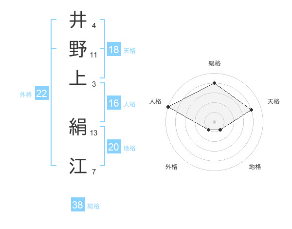 井野上 絹江さんを姓名の画数から五運を鑑定