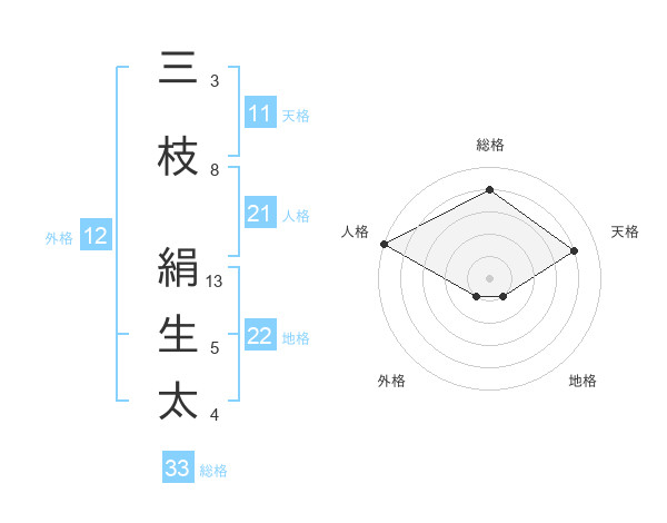 三枝 絹生太さんの総格は33画の4点!