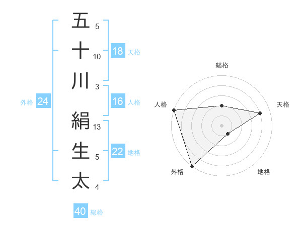 五十川 絹生太さんの外格は24画の5点!