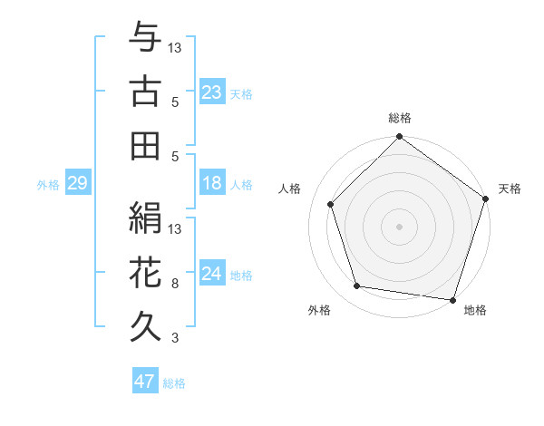 与古田 絹花久さんの総格は47画の5点!