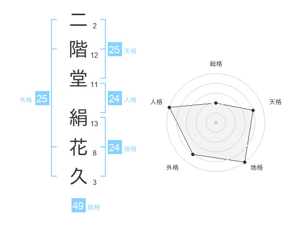 二階堂 絹花久さんを姓名の画数から五運を鑑定