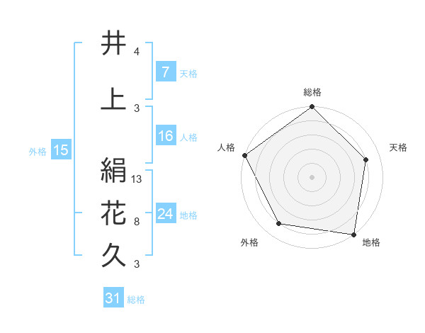 井上 絹花久さんを姓名の画数から五運を鑑定
