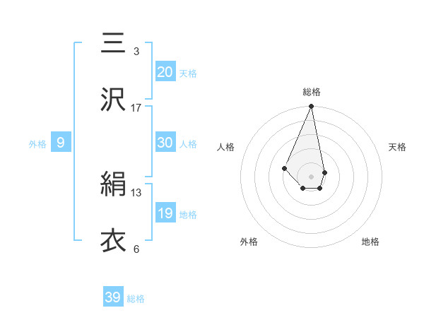三沢 絹衣さんを姓名の画数から五運を鑑定