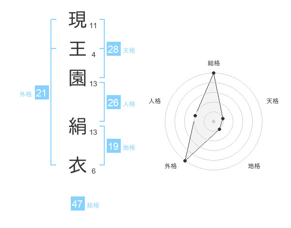 現王園 絹衣さんを姓名の画数から五運を鑑定