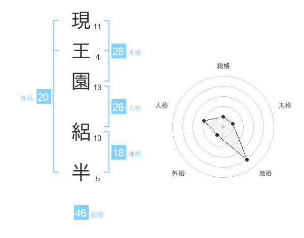 現王園 絽半さんを姓名の画数から五運を鑑定