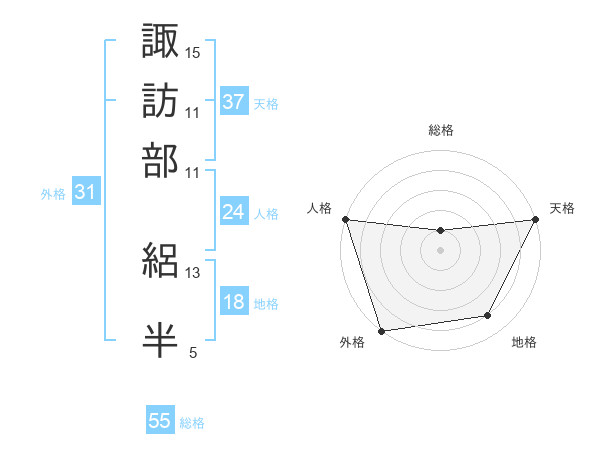 諏訪部 絽半さんを姓名の画数から五運を鑑定