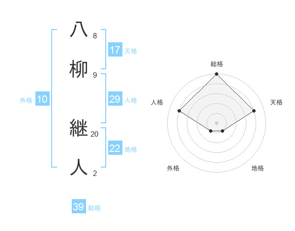 八柳 継人さんの総格は39画の5点!