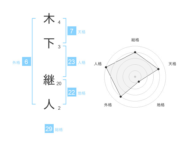 木下 継人さんの総格は29画の4点!