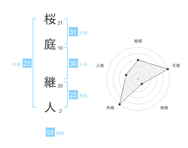 桜庭 継人さんを姓名の画数から五運を鑑定