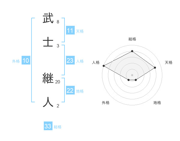 武士 継人さんの総格は33画の4点!