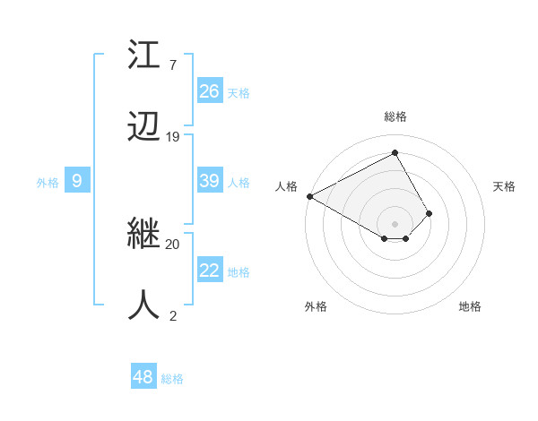 江辺 継人さんの総格は48画の4点!