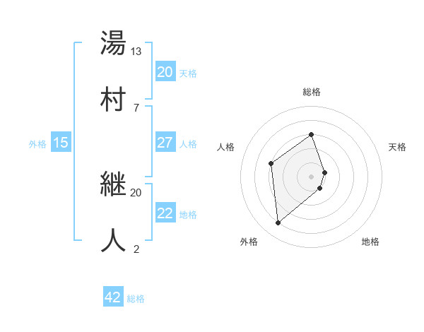 湯村 継人さんの天格は20画の1点!