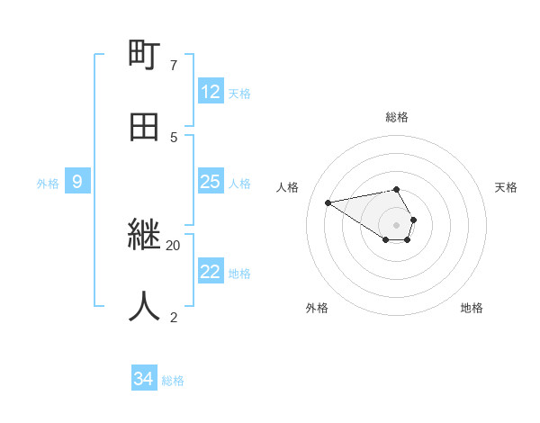 町田 継人さんの総格は34画の2点!