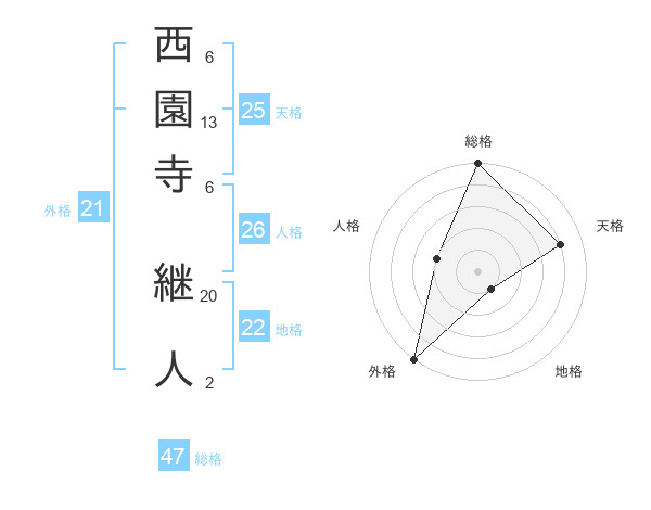 西園寺 継人さんの総格は47画の5点!