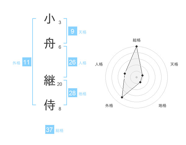 小舟 継侍さんを姓名の画数から五運を鑑定