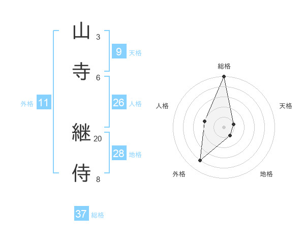 山寺 継侍さんを姓名の画数から五運を鑑定