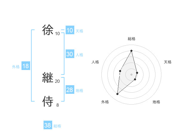 徐 継侍さんの総格は38画の4点!