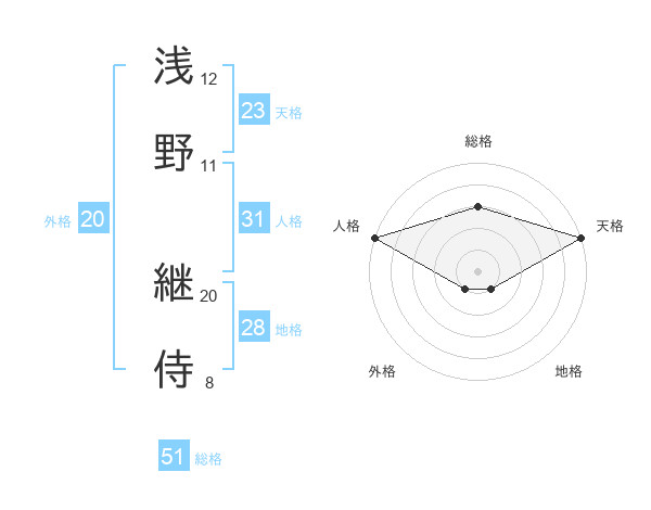 浅野 継侍さんの総格は51画の3点!