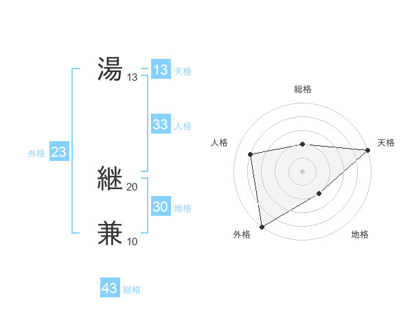 湯 継兼さんの総格は43画の2点!