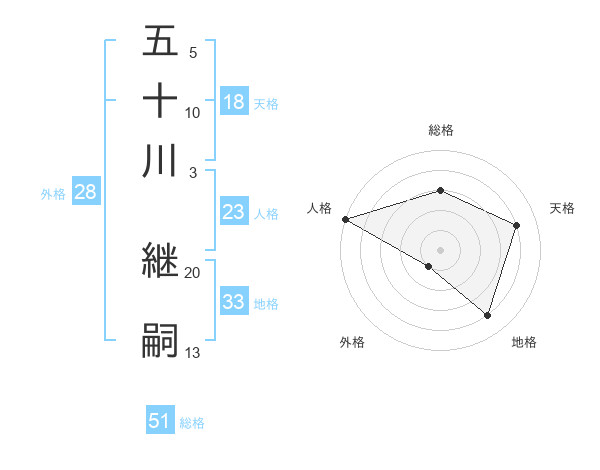 五十川 継嗣さんを姓名の画数から五運を鑑定