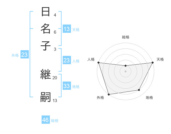 日名子 継嗣さんを姓名の画数から五運を鑑定