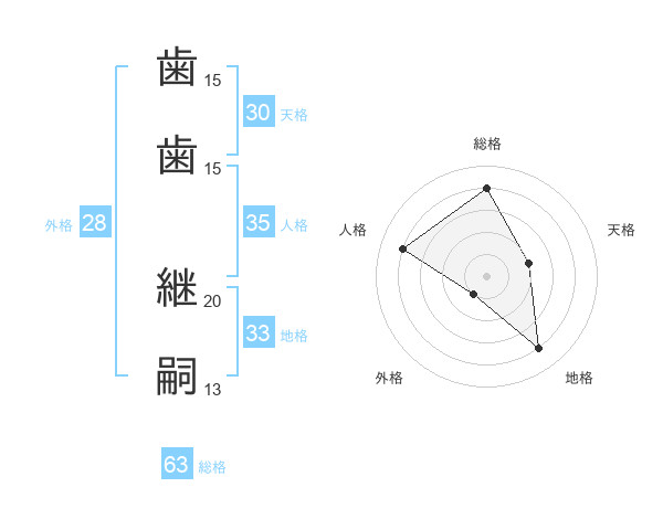 歯歯 継嗣さんの総格は63画の4点!