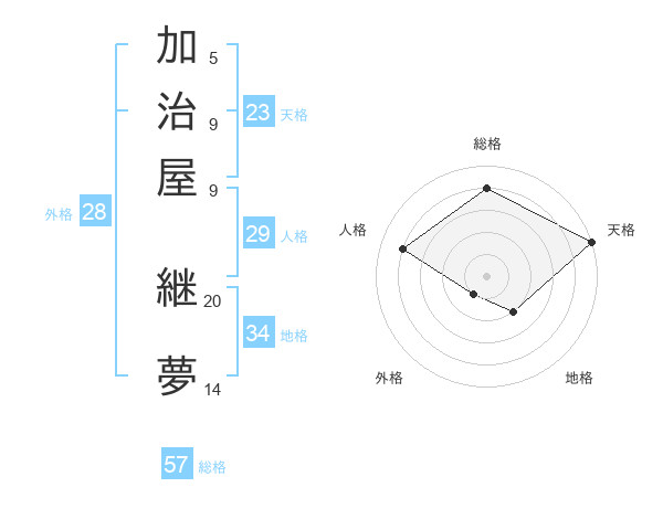 加治屋 継夢さんを姓名の画数から五運を鑑定