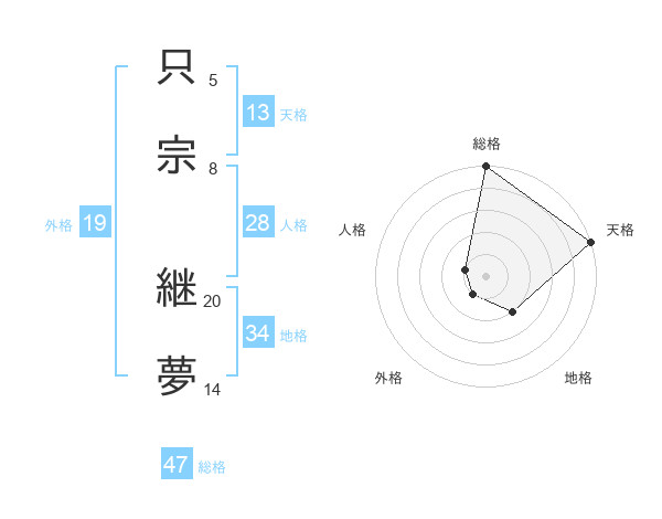 只宗 継夢さんを姓名の画数から五運を鑑定